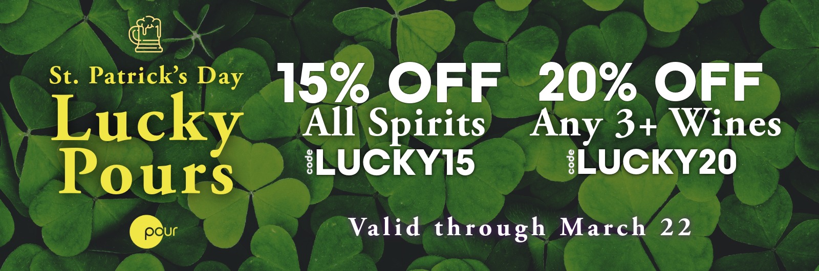 🍀 A Little Irish Luck: 15% OFF Spirits + 20% OFF 3+ Wines – LUCKY15 & LUCKY20 – Limited Time