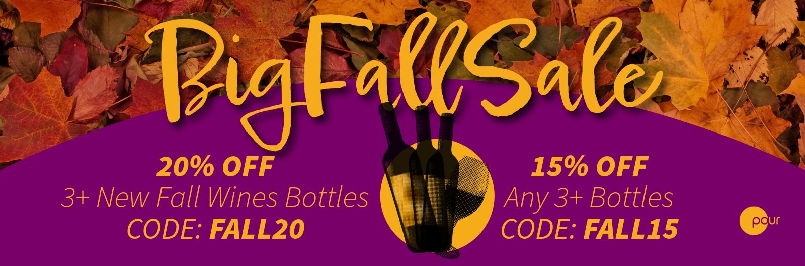 BIG FALL SALE - 20%OFF 3+ NEW FALL WINES (code: FALL20) / 15%OFF ANY 3+ WINES (code: FALL15)